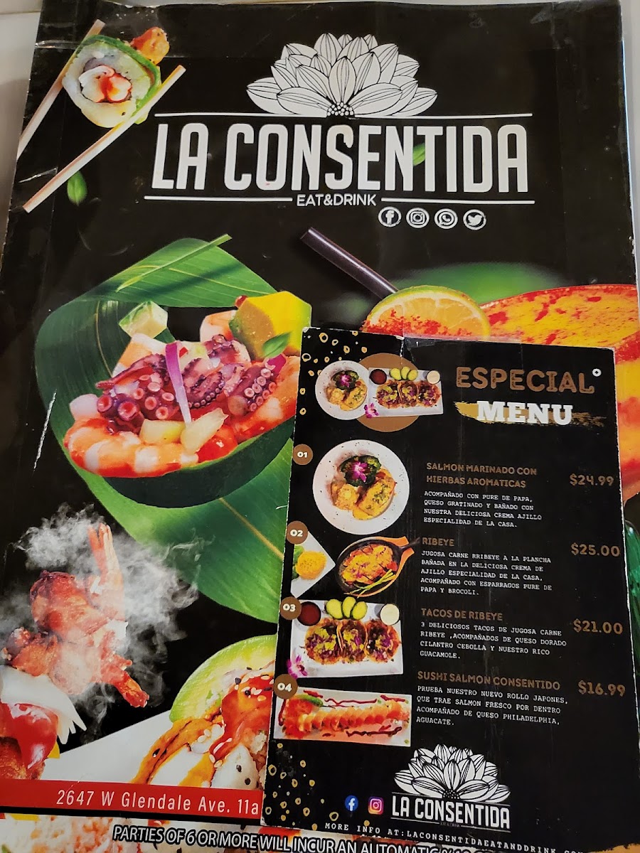 Welcome to La Consentida Eat & Drink, nestled in the heart of Phoenix, AZ. This vibrant establishment offers a delightful menu showcasing authentic Latin flavors that capture the spirit of communal dining. One of the highlights is their all-day taco selection, including the savory Tacos Gobernador featuring succulent shrimp and melted cheese for $15.99, or the flavorful Tacos De Camaron at $13.99, both generously garnished with onions and cilantro, enhancing each delectable bite.